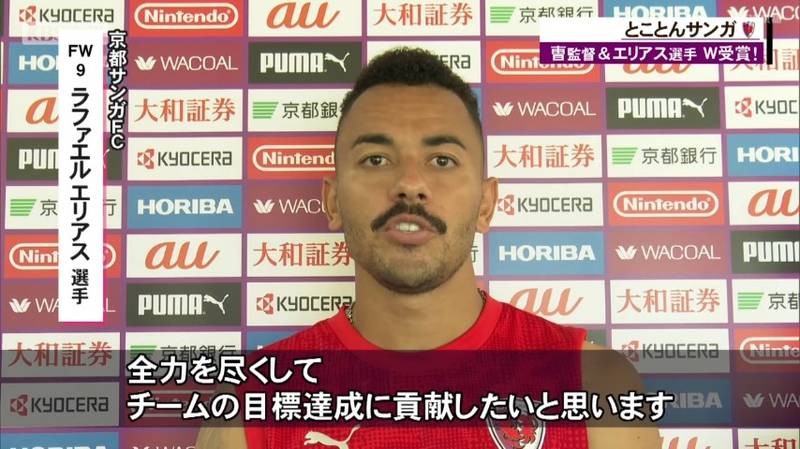 みんなで支え合って勝ち続けていましたし、今年の京都はエースがいない時でも、強さがあるので、エリアス選手の分も自分は得点という形でチームに貢献したいと思います」