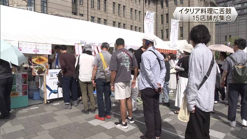 本格的なイタリア料理を屋外で楽しめるイベントが、28日、京都市中京区で開かれています。京都市中京区の京都市役所前広場で行われた「フェスタ イタリアーナ2025」は、京都市とイタリア・フィレンツェ姉妹都市提携60周年を記念して開いたもので、イタリア料理の技術向上と料理文化をより多くの人に知ってもらおうと活動をしている、京都イタリア料理研究会が主催となって開催しました。イベントには、京都市内のイタリア料理店など15店舗が参加していて、旬な食材を使ったパスタやフィレンツェ名物・Tボーンステーキ、イタリア産のワインなどを楽しむことができます。京都の人気イタリア料理店のシェフによる調理したばかりの料理を味わうことができるとあって、訪れた人たちは、ワインを片手に本格的なイタリア料理に舌鼓を打っていました。このイベントは、28日午後8時まで開かれていますが、売り切れ次第終了となります。
