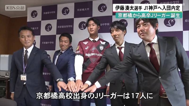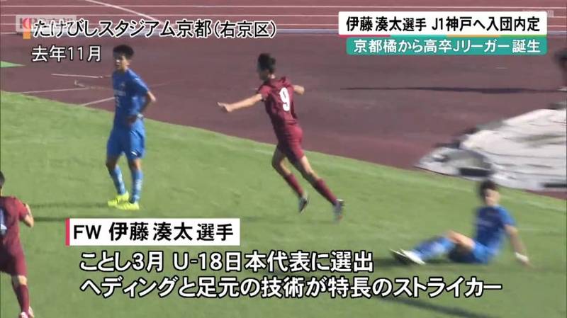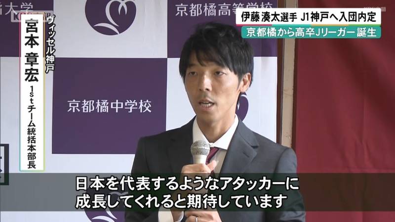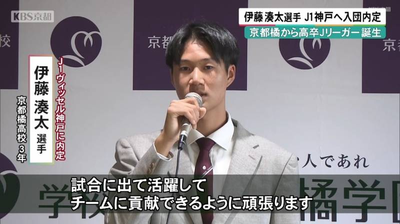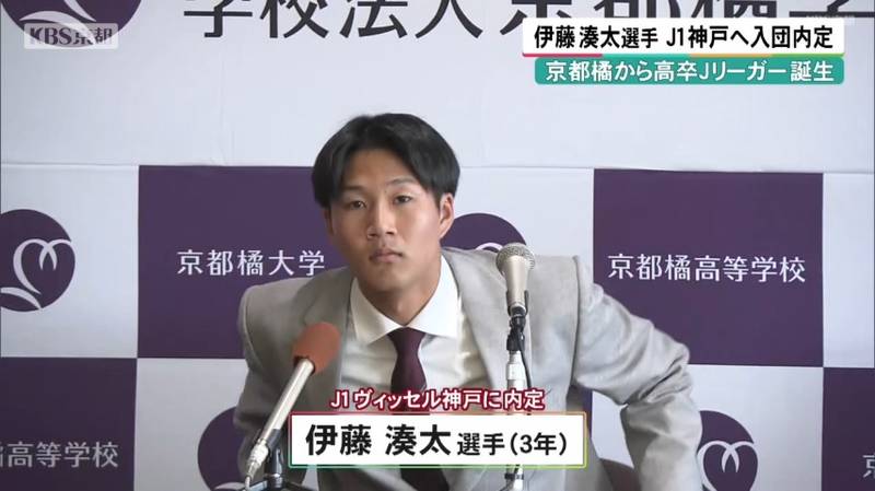 京都橘高校男子サッカー部に所属する伊藤湊太選手がJ1のヴィッセル神戸に加入内定し、入団発表会見が行われました。