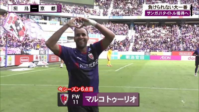 サッカーJ1の京都サンガは、10月25日、J1タイトル獲得に向けた大一番、リーグ首位の鹿島アントラーズと対戦しました。