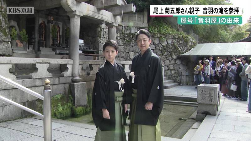 尾上菊五郎さんと菊之助さん親子は黒紋付き姿で外国人観光客らでにぎわう清水寺の境内を進み、音羽の滝へと向かいました。江戸中期の名優・初代菊五郎は京都生まれで、屋号の音羽屋は、音羽の滝が由来になっています。参拝は、二人の襲名披露となる12月の吉例顔見世興行を前に行われたもので、滝の前に立った菊五郎さんは、襲名の報告と興行の成功を祈願しました。