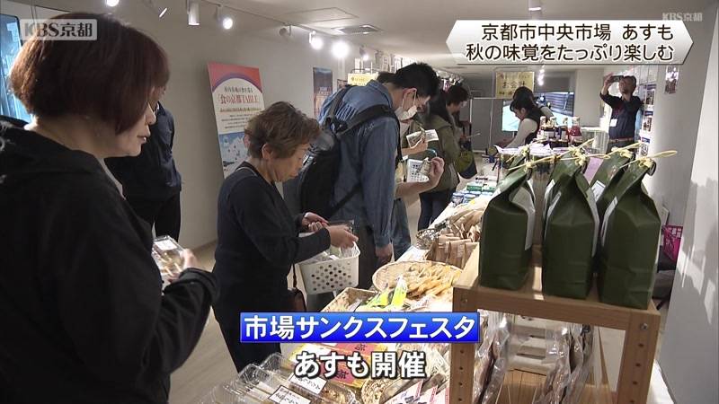 京都市下京区の京都市中央卸売市場で、食の魅力を堪能できる「秋の市場サンクスフェスタ」が1日、始まりました。このイベントは市場の活気と旬の食材や京都府内各地の特産品などを味わえるもので、初日の1日は、朝から多くの人が訪れ、市場ならではの商品や特産品を買い求めていました。普段は午前10時ごろには閉店する乾物店や漬物店などは正午まで営業し、買い物客が訪れていました。中でも、府内各地の自慢の食を集めた販売ブースには、開店時間の午前10時前から行列ができるほどの盛況ぶり。オープンを待っていた人たちのお目当ては乳製品やスイーツで、南丹市美山町の美山牛乳やみたらし団子、レトルトパックされた舞鶴海軍カレー、海産物を加工した缶詰などが人気を集めていました。このイベントは2日までで、市場の野菜や果物、水産加工品の販売も行われます。