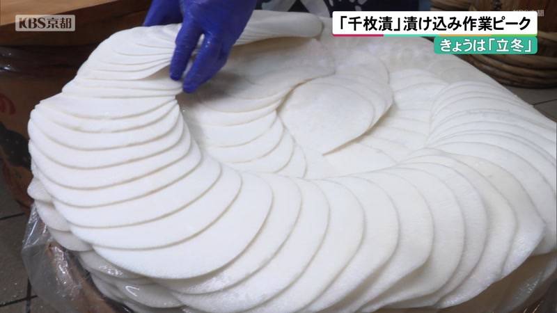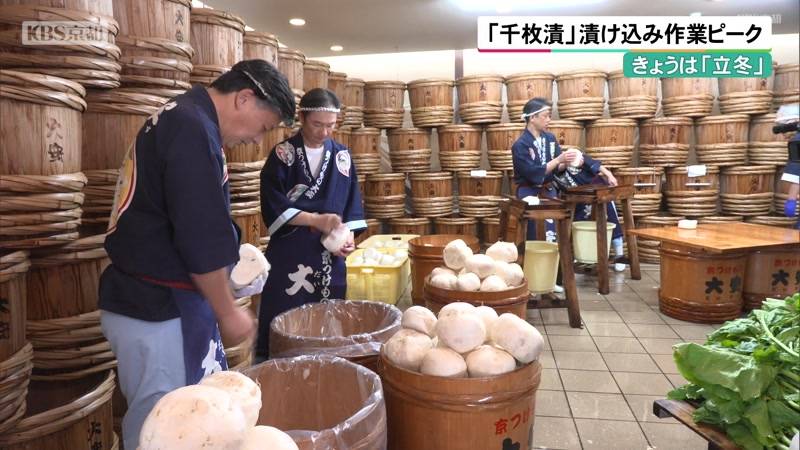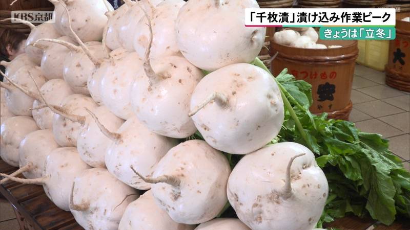 11月7日は暦の上では冬となる「立冬」です。京都の冬の風物詩の一つ、「千枚漬」の漬け込み作業がピークを迎えています。