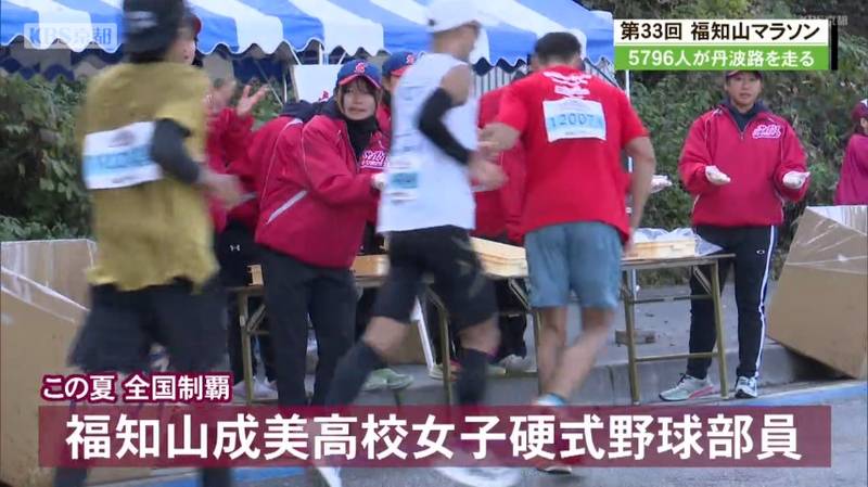 ボランティアでランナーを支えたのは、この夏、全国大会で11年ぶり2回目の優勝に輝いた福知山成美高校女子硬式野球部員です。