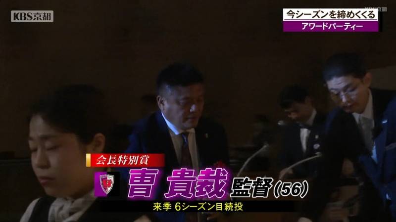 さらに後援会の堀場厚会長から、来年6シーズン目の指揮を執ることになったチョウ・キジェ監督に会長特別賞が贈られました。