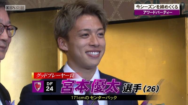 京都パープルサンガ後援会の主催で今回が28回目の開催となった京都サンガFCアワードパーティーには、福岡慎平キャプテンをはじめ、23人のサンガの選手たちが出席しました。