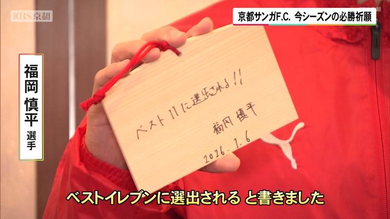 6日午後、例年以上に大勢のサポーターが見守る中、京都サンガの選手やスタッフなどが八坂神社の本殿に上がりました。飯野社長と曺貴裁監督、それに選手を代表して福岡慎平選手が玉串を捧げ、今シーズンの必勝を祈願しました。このあと、選手らはそれぞれ絵馬に今シーズンの抱負をしたためました。