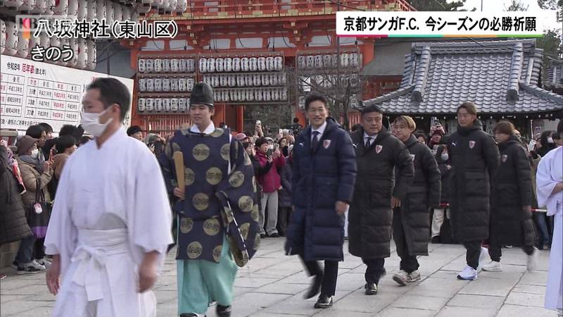 サッカーJ1の京都サンガF.C.が6日、京都市東山区の八坂神社を訪れ、今シーズンの必勝を祈願しました。