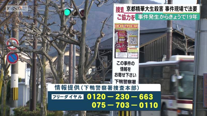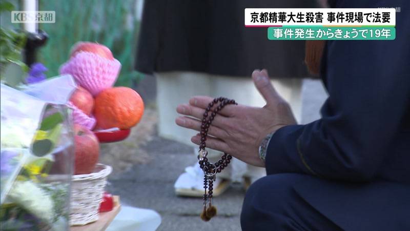 京都精華大学の男子大学生が何者かに刃物で刺され殺害された事件から、15日で19年です。事件現場では法要が営まれ、遺族らが1日も早い事件の解決を願いました。