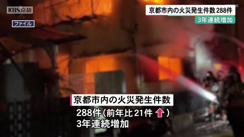 京都市内の去年1年間の火災の発生件数は288件と、3年連続の増加となりました。