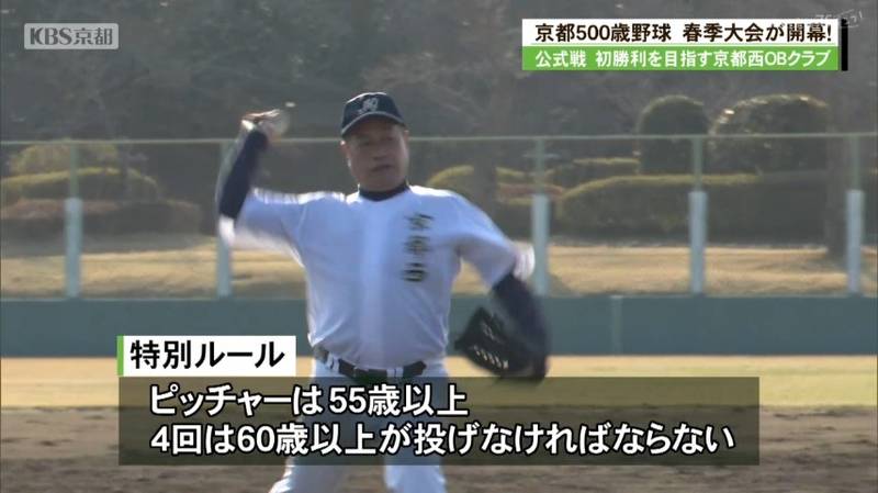 出場選手の9人の合計が500歳以上でなければならないなどユニークなルールがあり、この日、京都西には60歳以上のピッチャー経験者がいなかったので、平川さんが投げることになったのです。