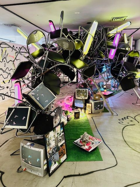 これは?!と思うような篠原眞さんのコラージュ作品「ブロード・キャスティング」。私たちが受け取ったそれぞれの3放送音源がうまく貼り付け(コラージュ)されていて、音楽や言葉が不況ながらも心地よく聞こえて来るのは何故でしょう?おもしろ~い!!
