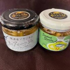 勝浦港に水揚げされた新鮮な「かつお」を、独自の製法で香ばしく仕上げた「燻製かつお」と、