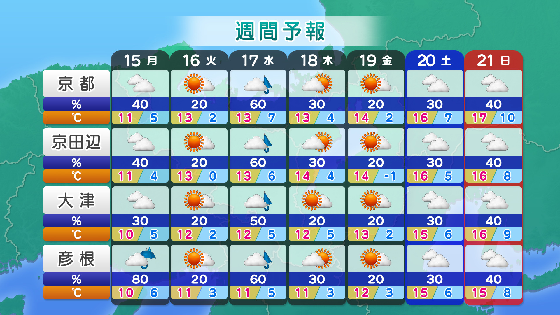 • ・お天気情報提供:日本気象協会