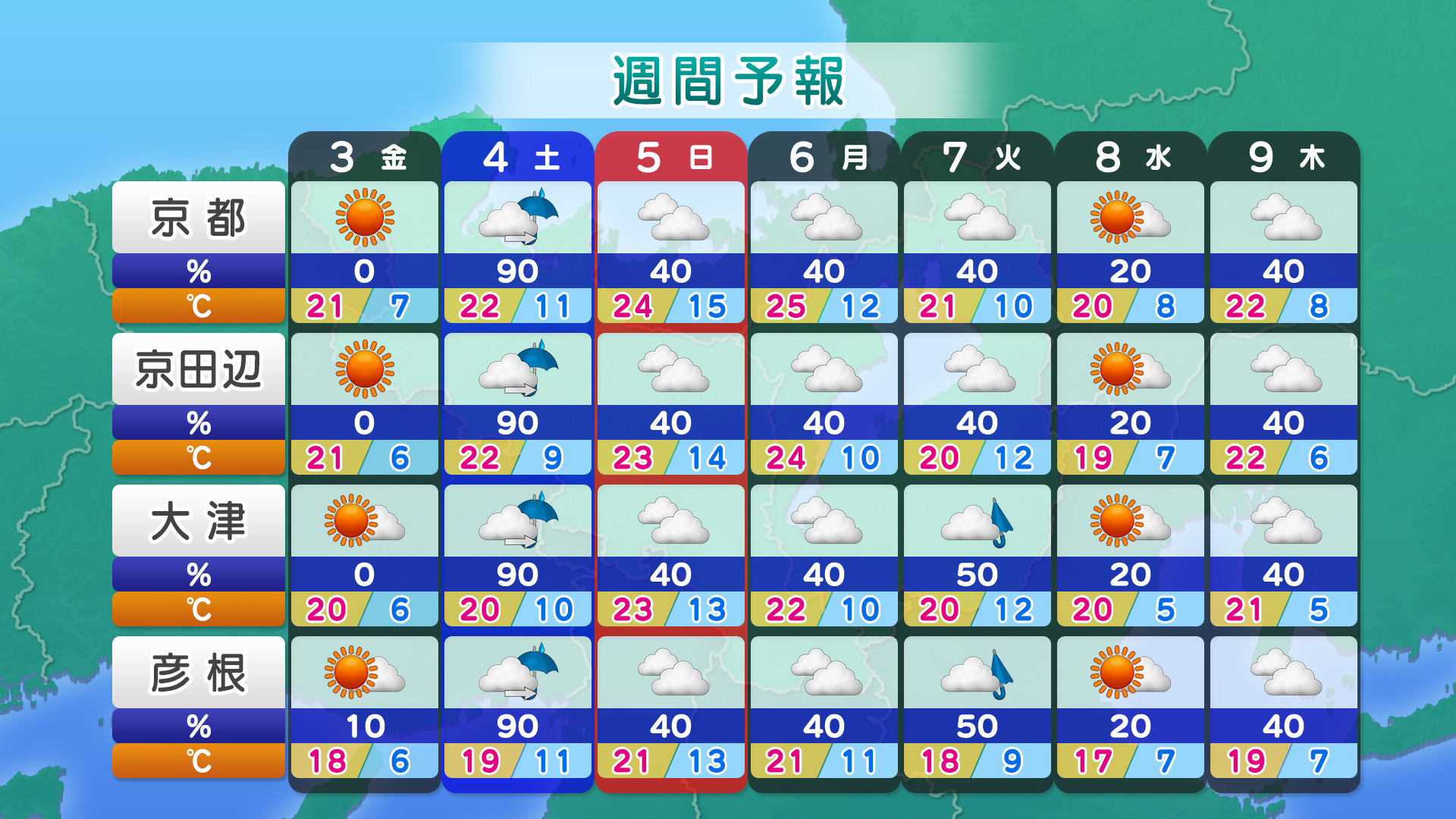 • ・お天気情報提供:日本気象協会