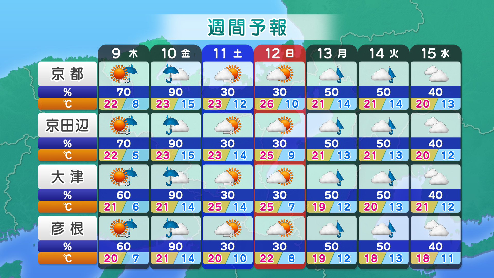 • ・お天気情報提供:日本気象協会