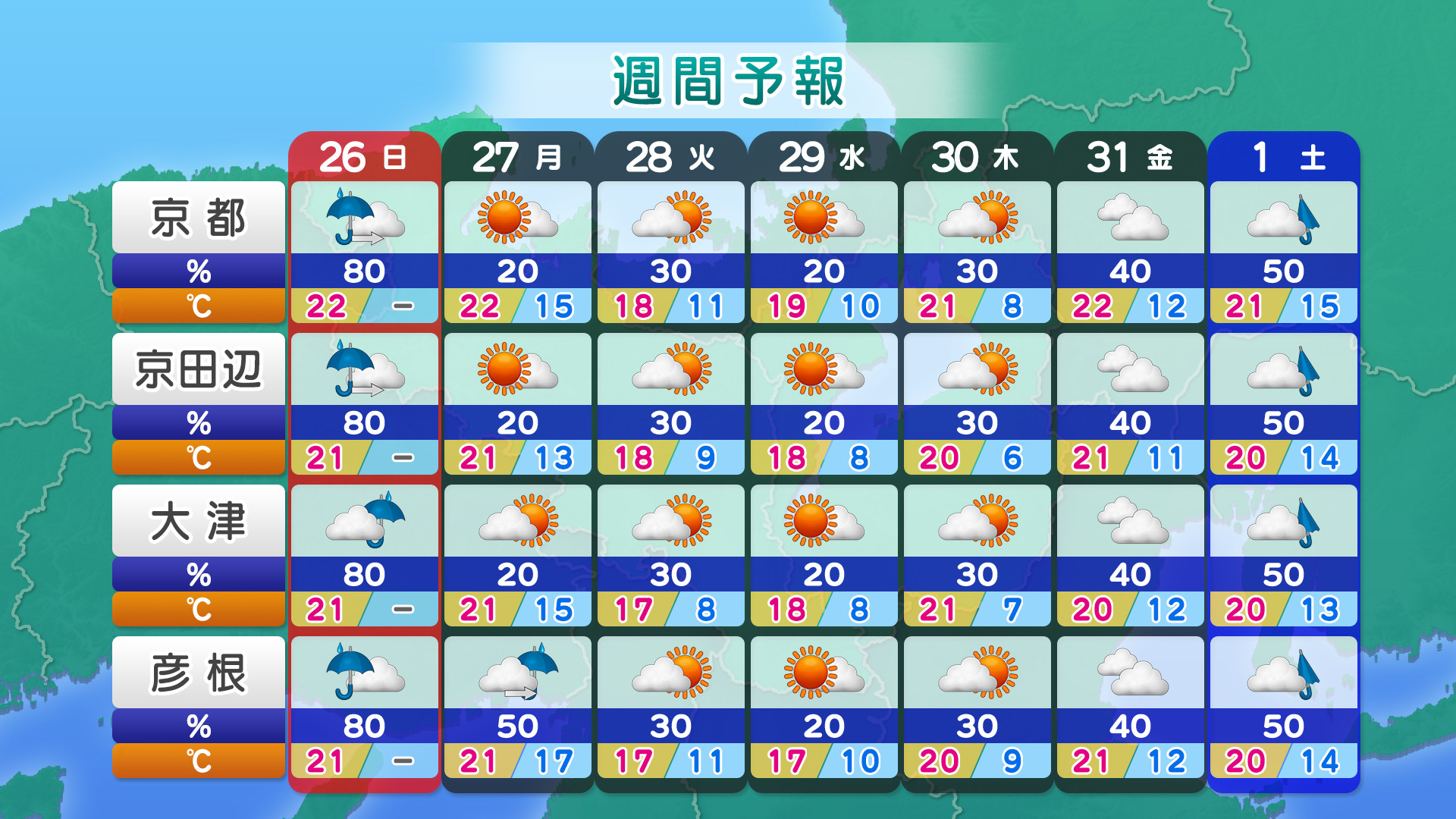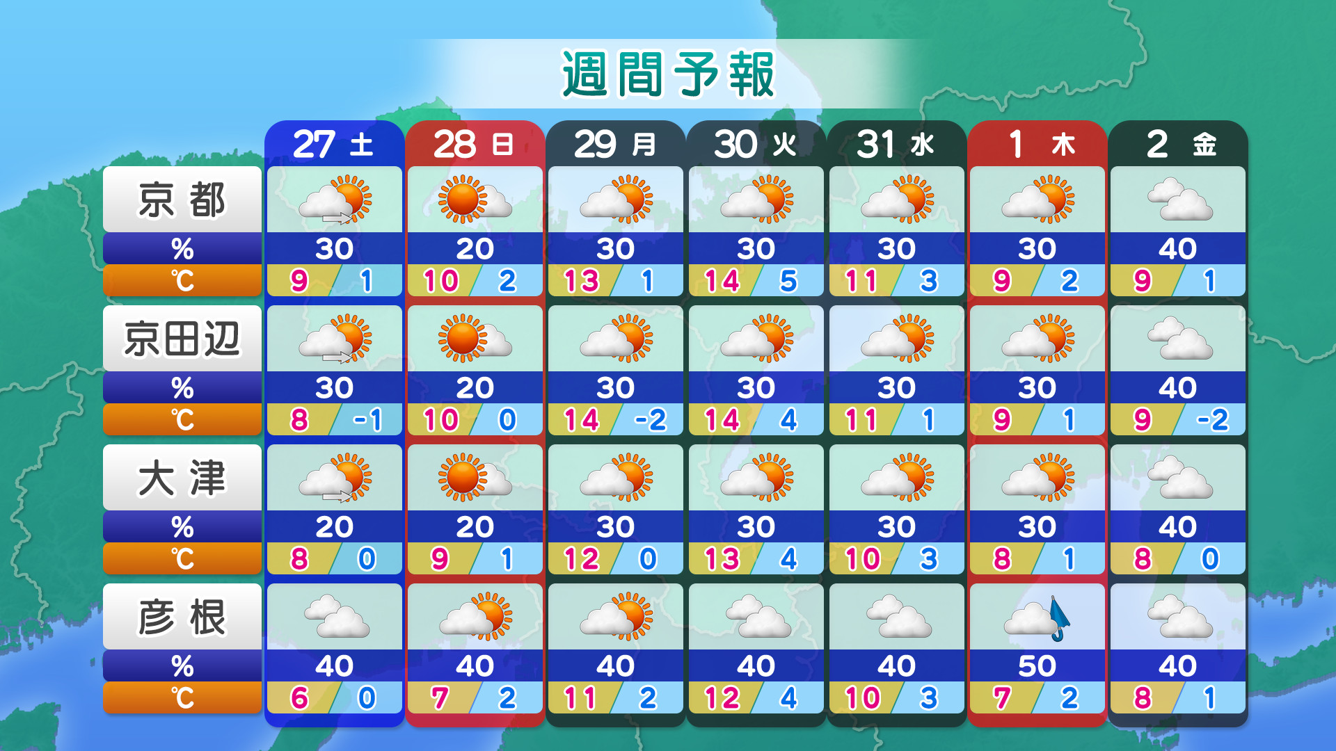 • ・お天気情報提供:日本気象協会