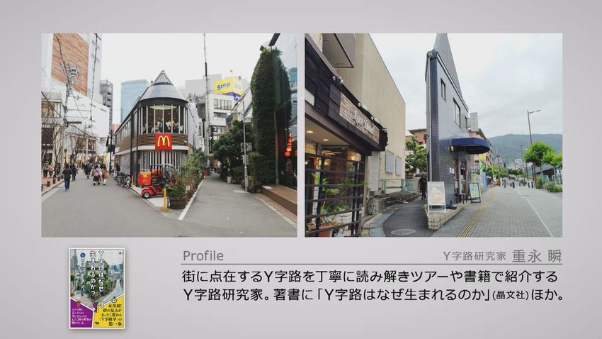 街を歩いていると、ふと現れるY字路。 当たり前のように通り過ぎてきたその分かれ道に、実は街の歴史や人の選択が刻まれている。街に点在するY字路を丁寧に読み解き、ツアーや書籍を通して紹介するY字路研究家。